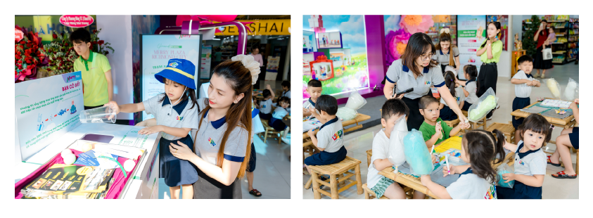 Nhiều trẻ em, học sinh được phụ huynh, thầy cô tổ chức tham quan, trải nghiệm các hoạt động workshop và nhận quà từ Merry Plaza.
